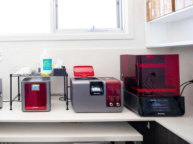 The 3D printer in our lab allows us to make whitening trays, retainers and mouthguards in-house. Your digital scan is easily sent to our lab and then the mould is 3D printed in resin. The Suck-down machine is then used to create your perfectly fitting appliance.